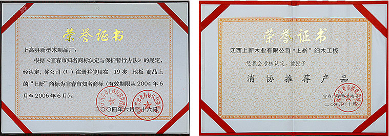 6、2004年6月26日被宜春市工商行政管理局和宜春市知名商标认定委员会认定为“上新”商标为宜春市知名商标。