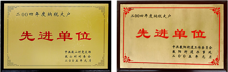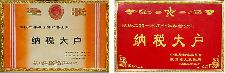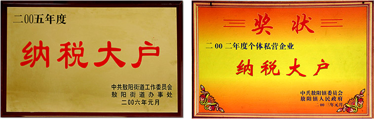 1、2001年、2002年被中共敖阳镇委员会和敖阳镇人民政府评为“纳税大户”和“税利工作先进单位”