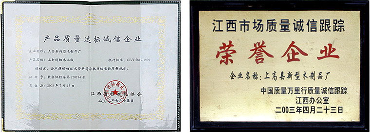 1、2002年7月15日被江西省标准化协会认定为“产品质量达标诚信企业”。